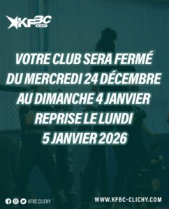 Le club sera fermé à partir du mercredi 24 décembre à 17h